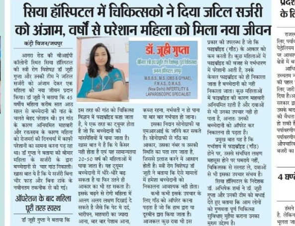 Dr. Juhi Gupta is an accomplished medical professional with 13 years of extensive experience specializing in Obstetrics, Gynecology, Infertility, and Laparoscopic Surgery. She holds an MBBS degree, followed by a Master of Surgery (MS) in Obstetrics and Gynecology. Dr. Gupta further honed her skills by obtaining certifications in FMAS (Fellowship in Minimal Access Surgery) and DMAS (Diploma in Minimal Access Surgery) from New Delhi, India. Her expertise lies in providing advanced care and treatment in infertility management and laparoscopic procedures.